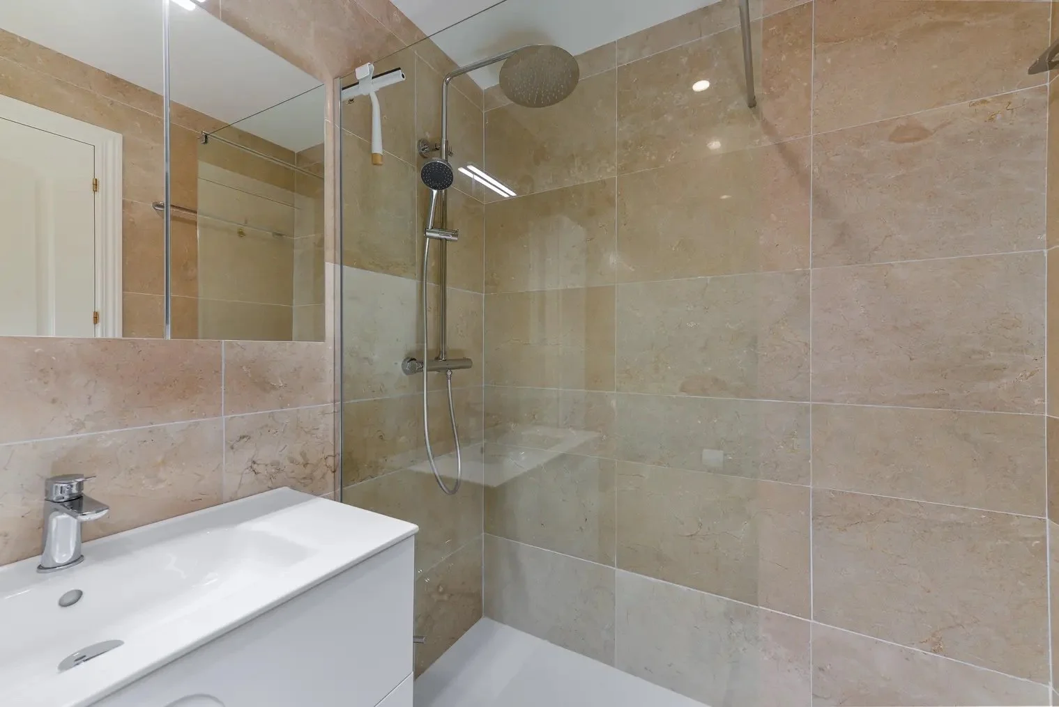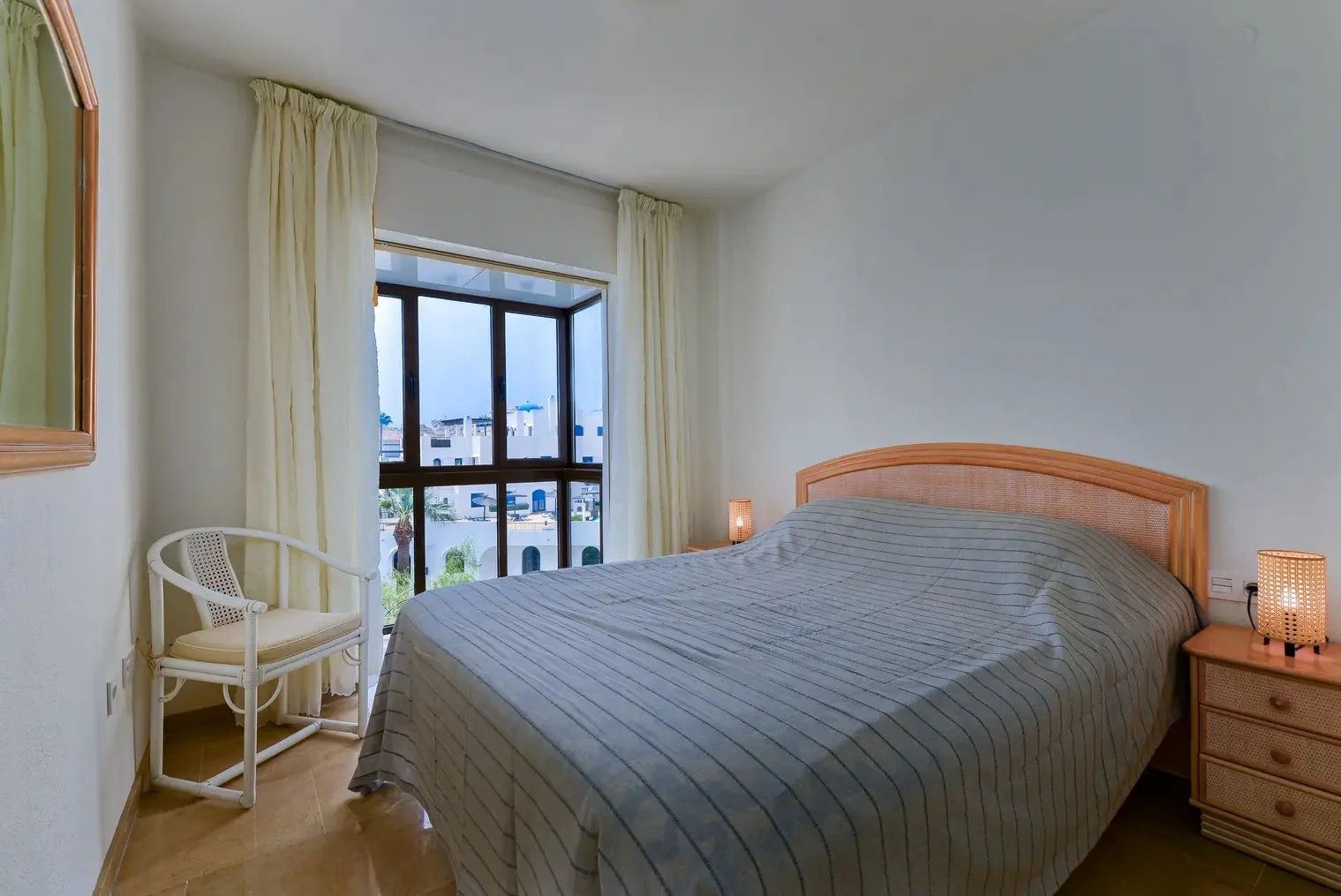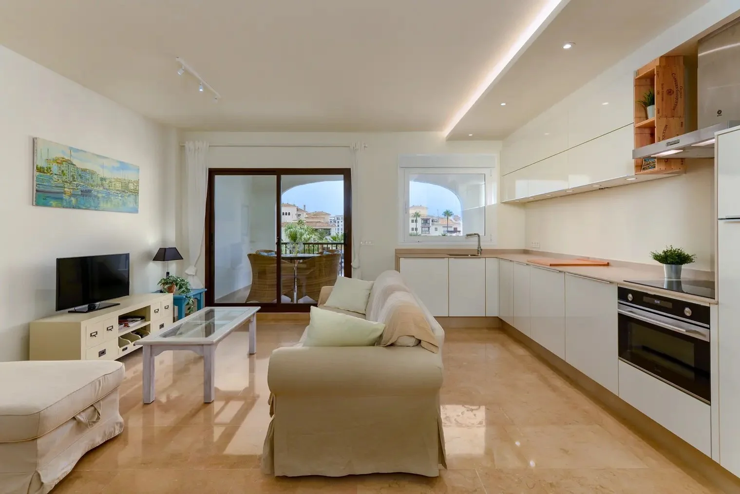 The apartment is located right at the heart of La Duquesa, at residency Marine de la Duquesa - just a stone throws away from the bustling port with its cozy restaurants, bars and beach. The apartment counts a living room, a dining area, a fully equipped brand new kitchen, two bedrooms - one with an ensuite bathroom, two bathrooms, a spacious terrace with loungers and dining area boasting wonderful views as well as a private parking space. At the well-kept communal spaces, you're welcome to take a refreshing dive into the swimming pool, equipped with loungers or spend the day at the beach, right in front of the apartment. The absolute spot-on location makes it the perfect holiday retreat to enjoy a tranquil and luxurious stay for both couples or a small family, yet close to all amenities.